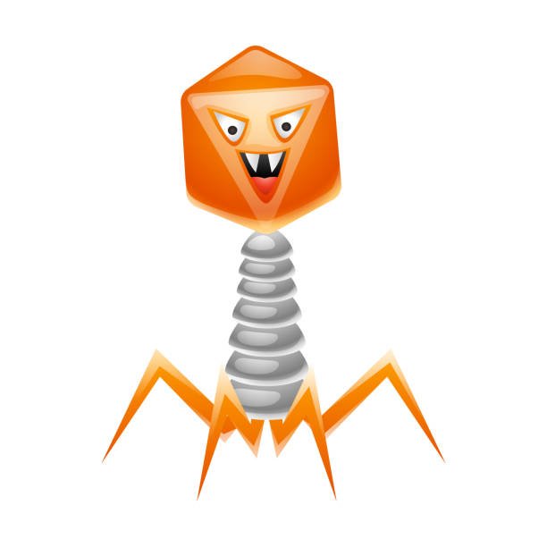 Bakteriyofaj virüs tasviri. Küçük öfkeli mikrop veya canavar.